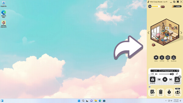 Prefer less screen clutter? Switch to Mini Mode and keep the game neatly accessible in your taskbar, so you can stay focused on your main work while still enjoying music, ambience, and quick access to your tools.